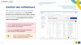 Pendant la phase de conception UI, j’ai utilisé le Design System de La Poste comme référence. Cependant, certains composants étaient manquants, donc j’ai créé un UI Kit comprenant divers éléments tels que la sidenav, l’arborescence, les cards d’offre, etc. De plus, j’ai préparé une présentation pour les développeurs et la PO de La station afin de détailler toutes les spécifications fonctionnelles des composants et leurs animations.